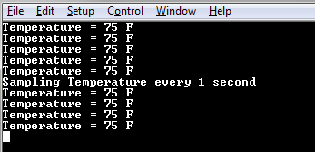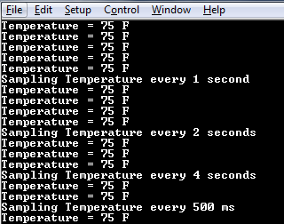 - While the temperature sampling rate changes on every switch SW1 press, notice the LED1 toggling at the same sampling rate