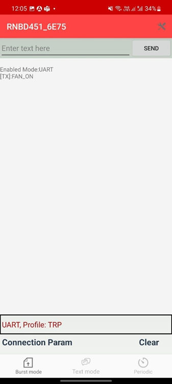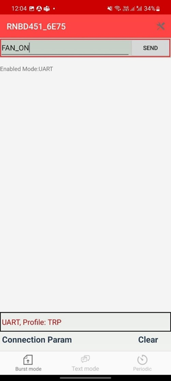 BLE Control mode: Control the DC fan based on BLE commands from Microchip Bluetooth Data (MBD) app in smartphone. Besides, the user will be able to switch back to Temperature Control mode. The available commands for use are: