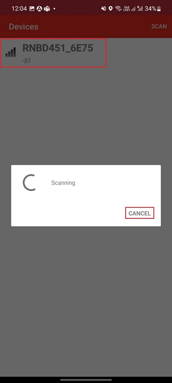 RNBD451_XXXXdevice appears, click the CANCEL button to cancel the device scanning