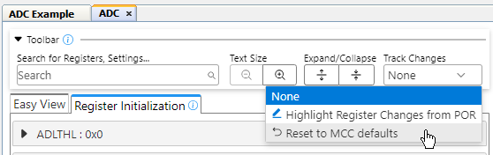 Analog Input channels can be selected either from the MCC Melody Graphical User Interface (GUI), or from Pin Grid View you can Select an Analog Input (ANx).
