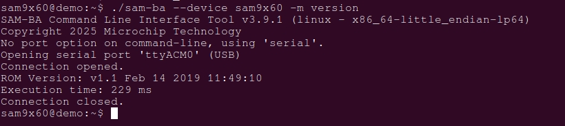 sam-ba –device sam9x60:0:1 -a resetFigure 4-9. Target: Reset in Secure Boot Mode - Read back the Secure Configuration