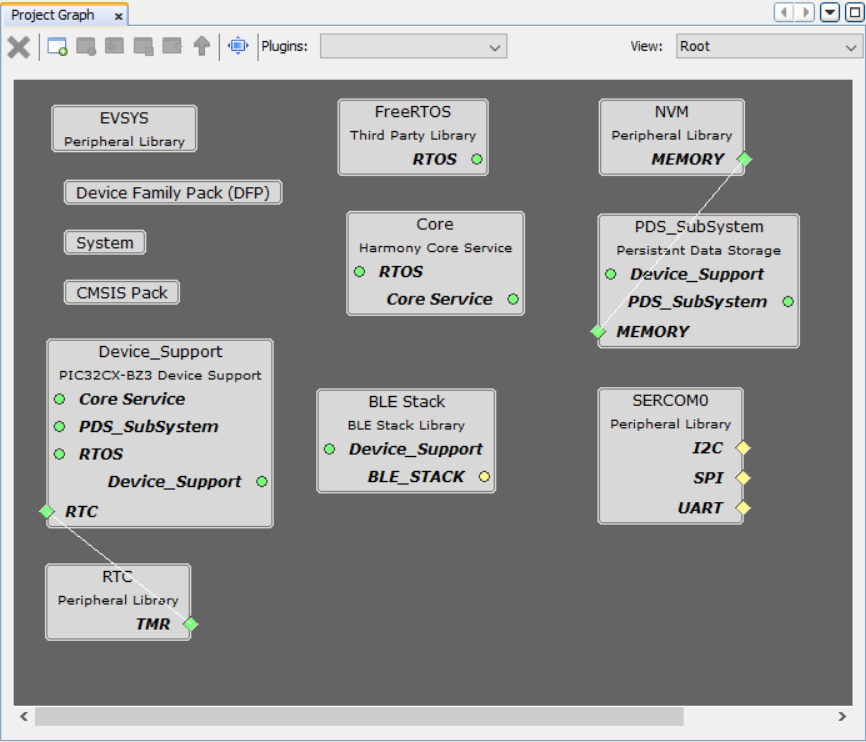 The OSAL, RF System and BLE System initialization routine executed during program initialization can be found in the project file. This initialization routine is automatically generated by the MCC.