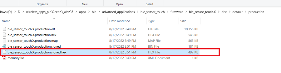 Microchip conventional .production.hex will no longer work for PIC32CX-BZ3/PIC32CX-BZ36 and WBZ35x family of devices. .hex File