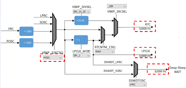 - Set LPCLK source to POSC. From the drop-down list, select POSC.