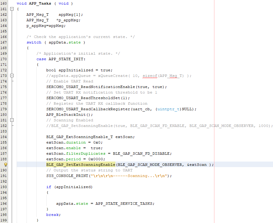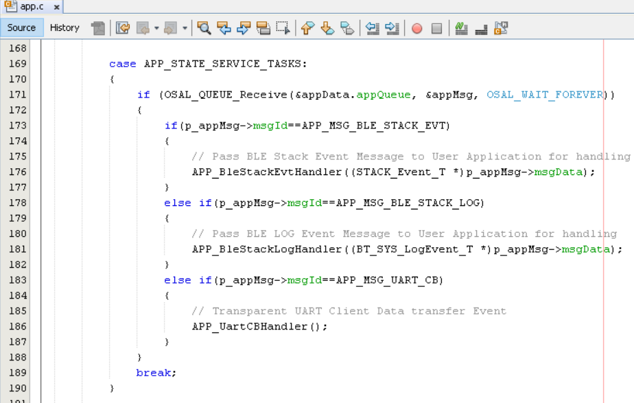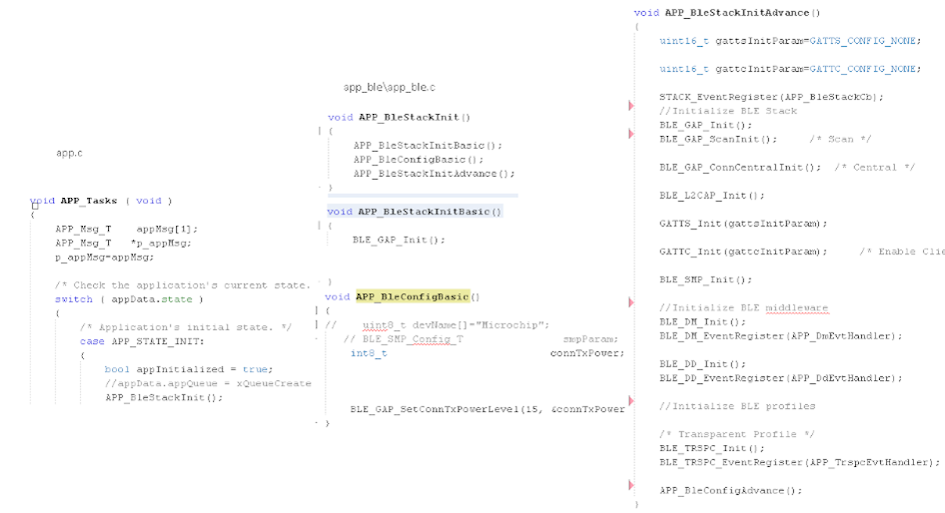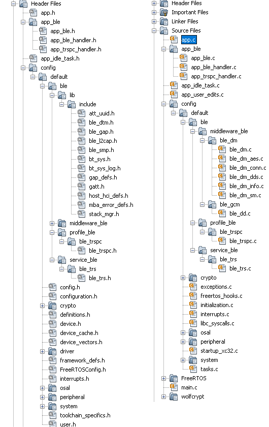 | Source Code for the BLE stack related component configurations, code related to function calls from app.c |