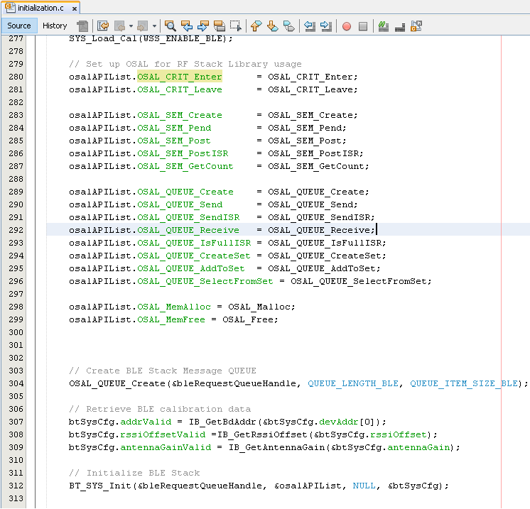 Initialization routines for OSAL, RF System, and BLE System are auto-generated by the MCC. See OSAL Libraries Help in Reference Documentation from Related Links.