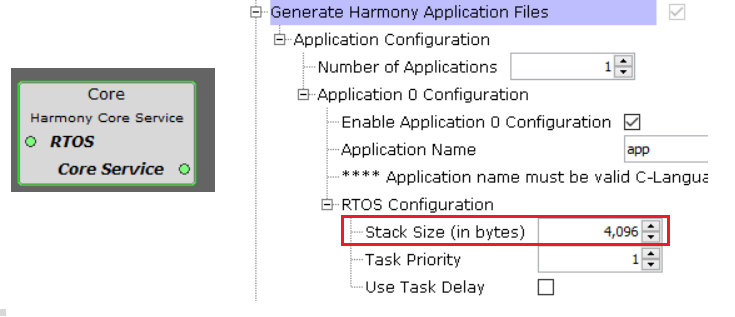 bytes, then set the total stack size as 1024 + 3584 = 4608 bytes.