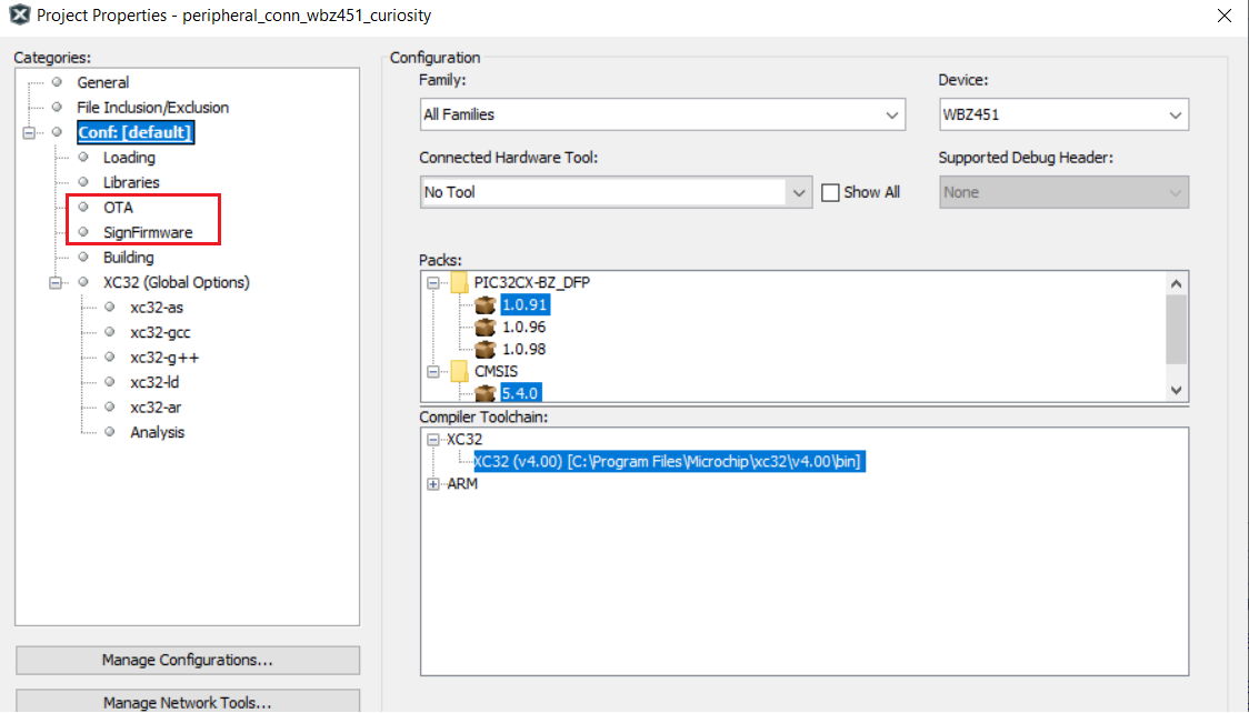 14.3.6.3 Project Properties Configuration for Current/Running Firmware