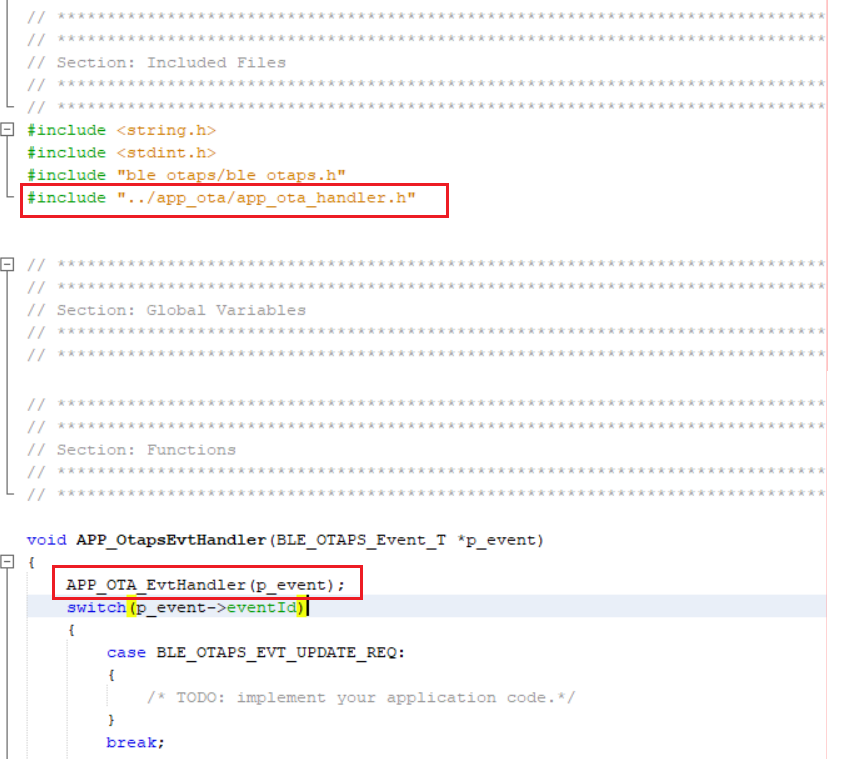 "app_ble/app_otaps_handler.c".APP_OTA_EvtHandler(p_event);#include "../app_ota/app_ota_handler.h"