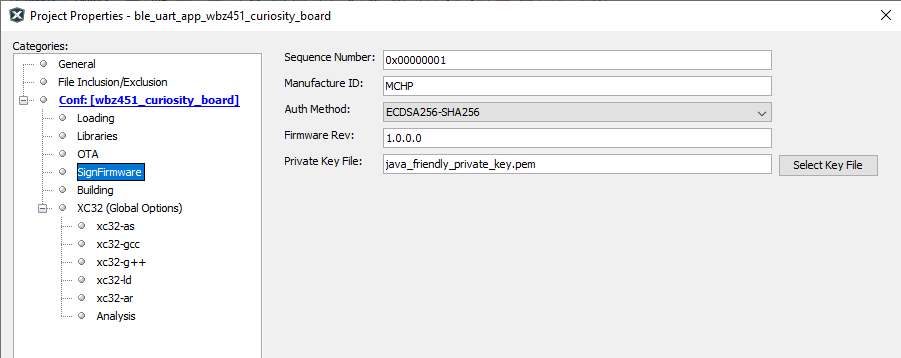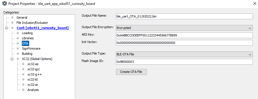 - BLE OTA Header and Encryption Key Configuration: