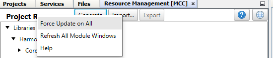 Create a new harmony project. For more details, see Creating a New MCC Harmony Project from Related Links.
