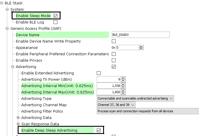 Advertising Interval Min can be modified to adjust Deep Sleep Advertising interval.