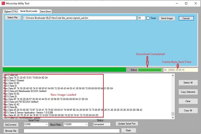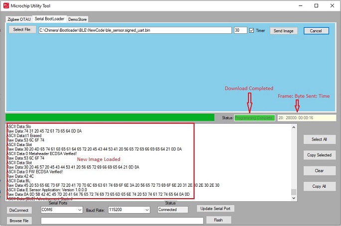 Bootload enabled binary image (ble_sensor.signed_uart.bin)