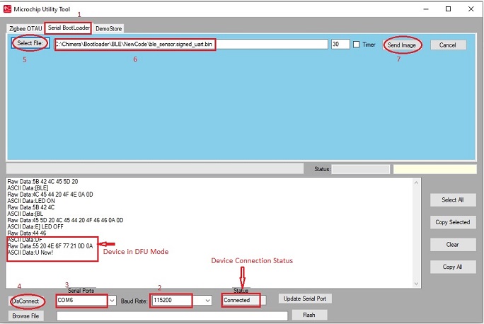 Click on Select File Button and choose ble_sensor.signed_uart.bin file