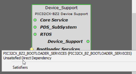 Add the "Bootloader Services" dependent component for "Device Support" component in project graph. This component generates the supporting linker file and MPLABX script needed for generating OTA bin file.