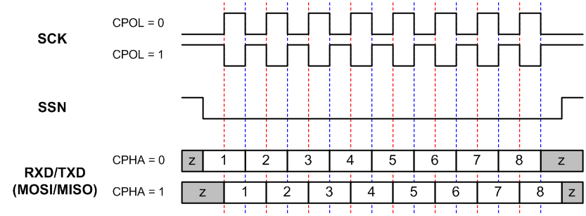| Mode | CPOL | CPHA |