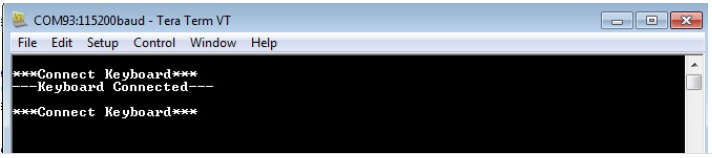 If a USB keyboard is not connected to the Embedded USB Host, the terminal emulator window will show the Connect Keyboard prompt.