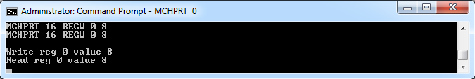 | Example | MCHPRT REGW 0 8 Reg 0 value will change to 8 | |||||