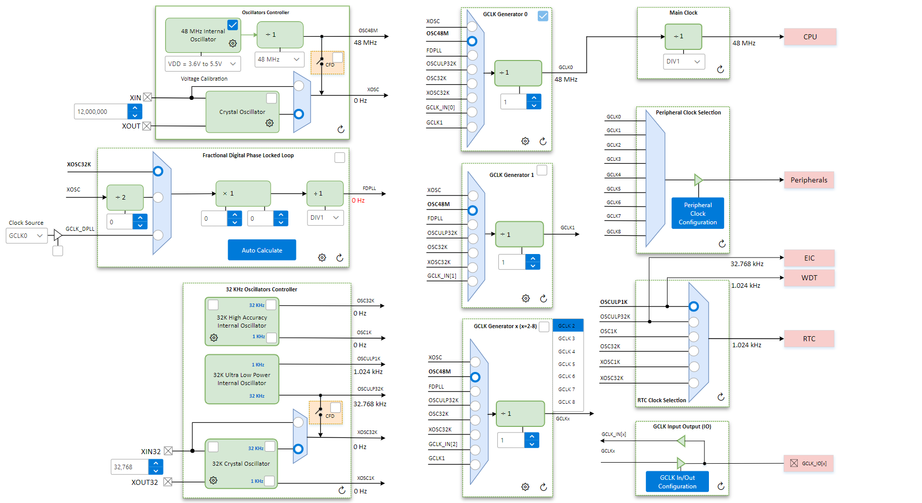 The visual interface shows clock sources and dividers, making it easy to check or adjust settings.