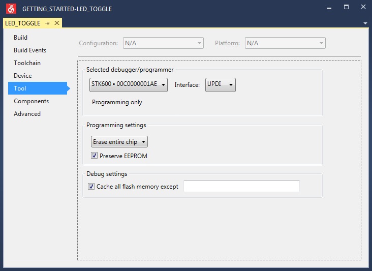 Selected debugger/programmer to STK600 and Interface to UPDI.