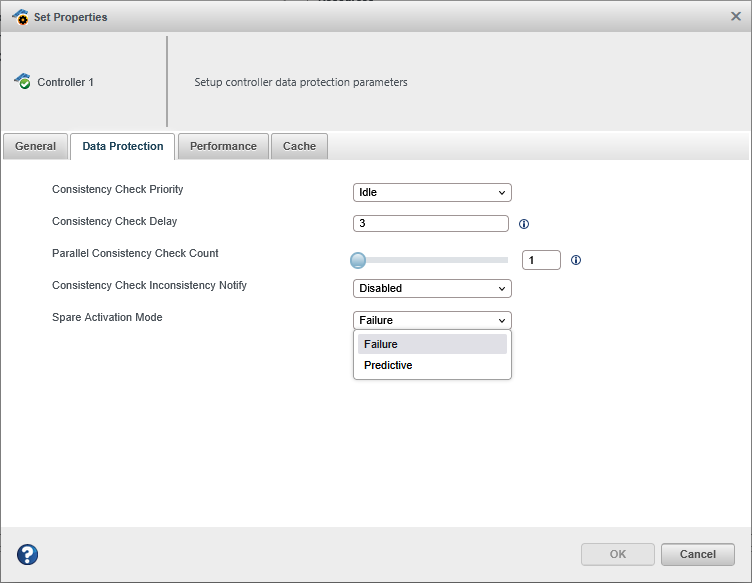 The spare activation mode determines when a hot spare is used to rebuild a failed logical drive. You can choose to activate a spare when: