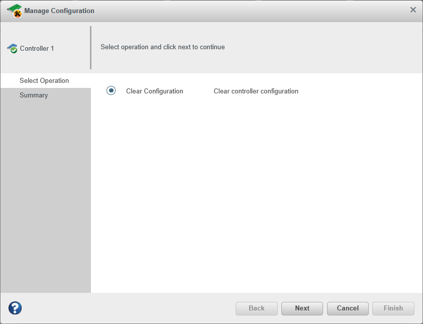 The Manage Configuration wizard opens. - Select Clear Configuration, then click