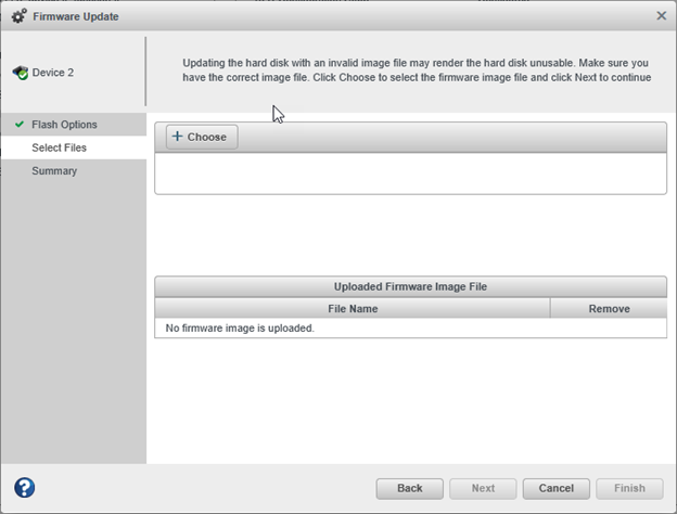 - When the file name appears in the Uploaded Firmware Image File(s) list, click Next.