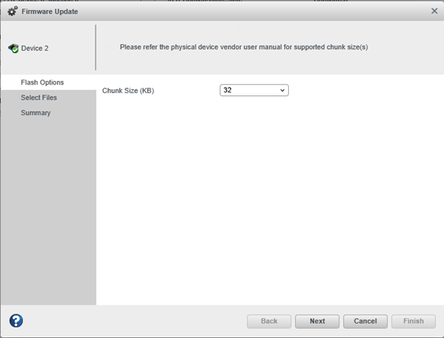 - In the Flash Options panel, select the Chunk Size, from 1-n, in kilobytes
