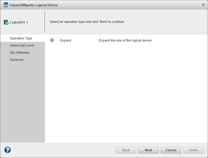 The Expand/Migrate Logical Device wizard opens.
