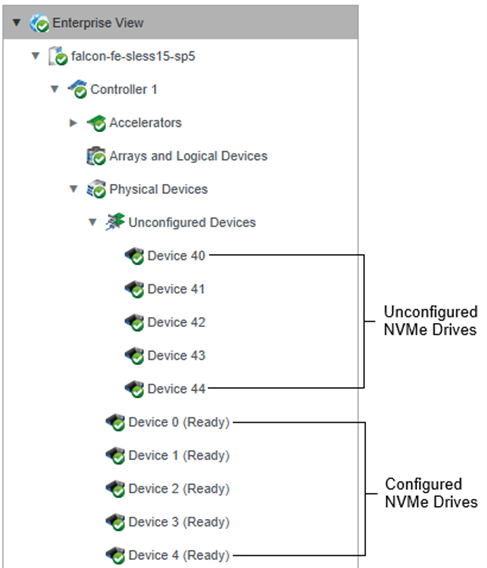 Device group node, whereas unconfigured drives are listed under the Unconfigured Devices