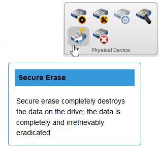 - On the ribbon, in the Physical Device group, click Secure Erase.