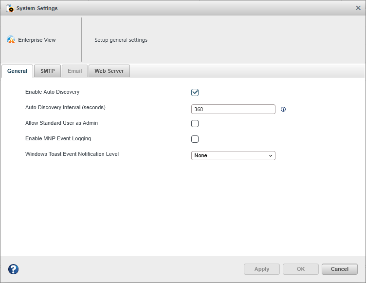 The System Settings window opens for that system. The auto-discovery settings appears under General tab..