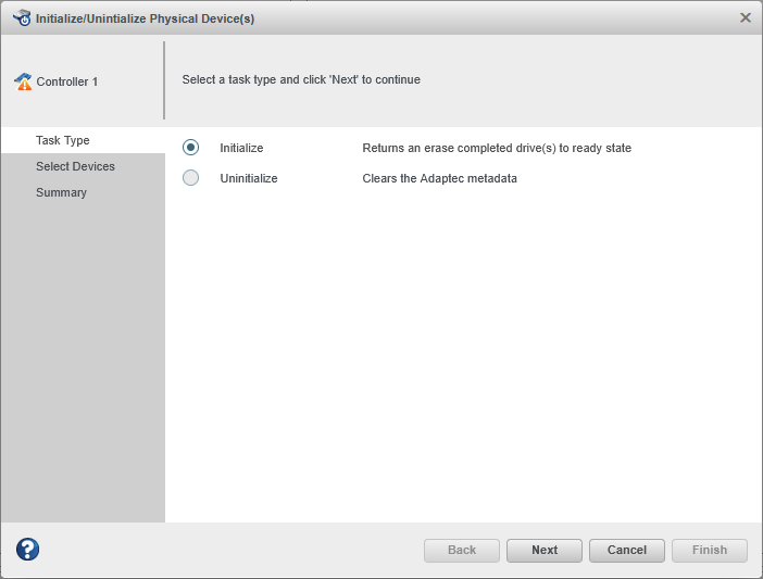 - Select drives on the controller to initialize or uninitialize, then click Next.