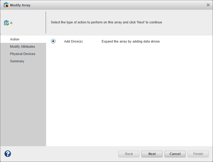 maxView Storage Manager allows you add Drives to an Array. If you add the logical drives, you are expanding the array by adding the data drives.