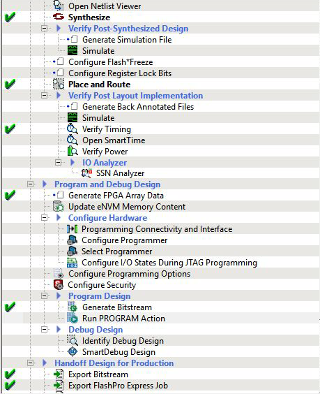 - Navigate to tab and double-click Run PROGRAM Action.A green tick mark appears when the device is programmed successfully, as shown in the following figure.