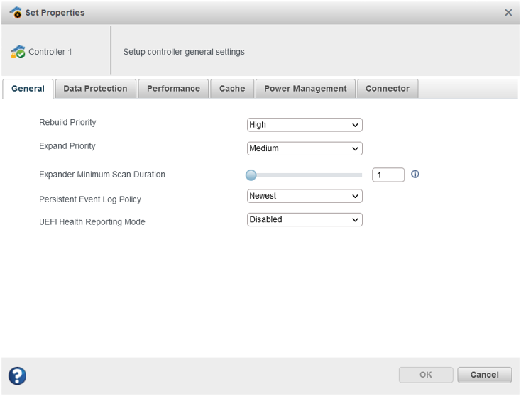 The value of UEFI Health Reporting Mode gets displayed in the Properties tab of the controller.