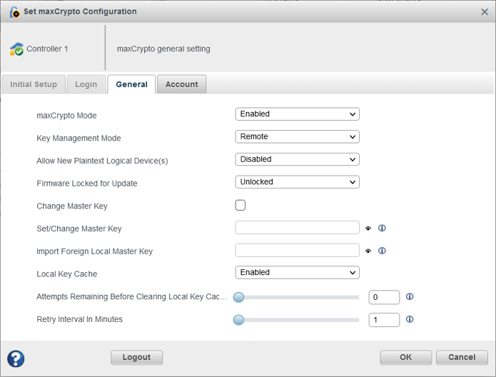 To modify the maxCrypto configuration, use the General tab on the Set maxCrypto Configuration window.
