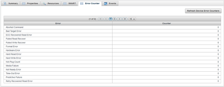 To view the physical device error counters for a hard drive or SSD, select the drive in the Enterprise View then, on the Storage Dashboard, click the Error Counters tab. The table below describes the error counters.