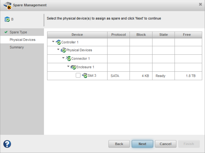 - Dedicated Hot Spare: If the array/logical device is created using 4K SATA drives, then only the 4K SATA devices can be assigned as spares.