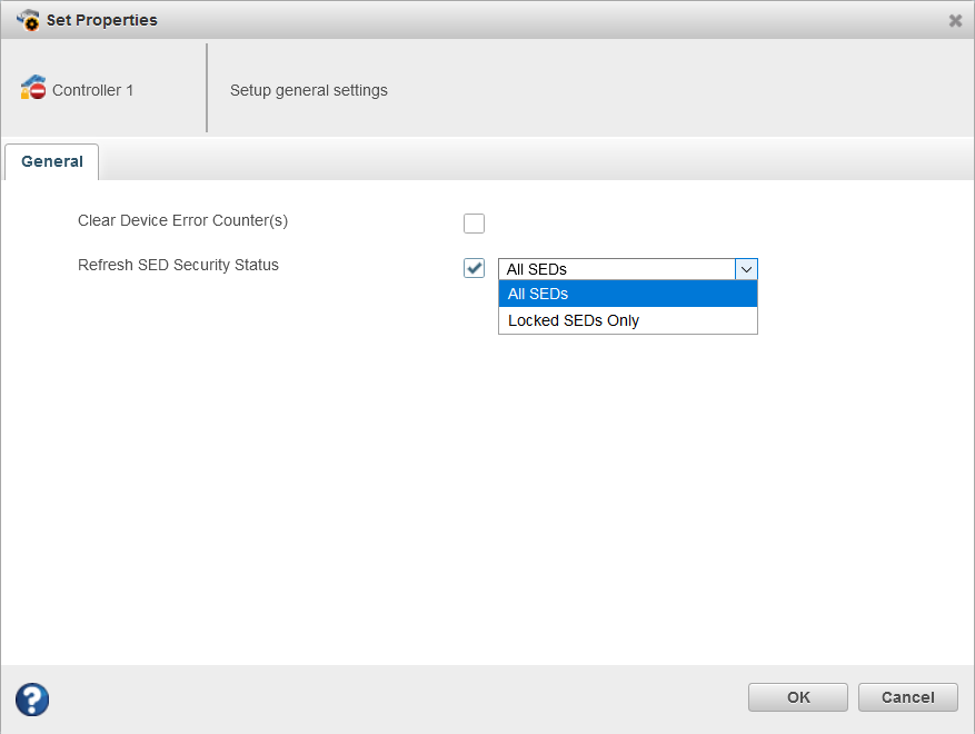 - Locked SEDs Only: This will refresh the SED security status for all locked SED drive attached to the controller.