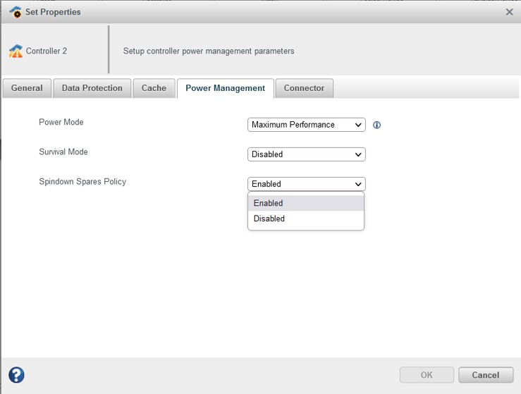 Note: Spindown Spares Policy is supported only in RAID and Mixed Mode. - Click OK.