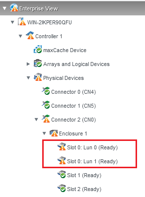 In enterprise tree view, multi actuator drive is listed along with its LUN number and every LUN is listed as a separate physical device.