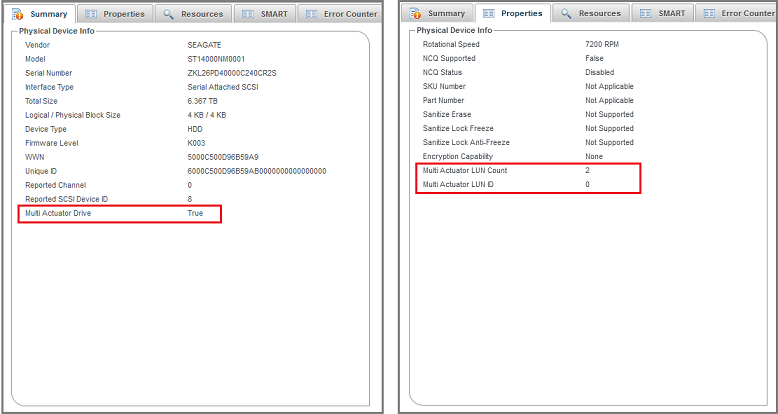 - Multi Actuator Drive - Specifies whether this physical device is multi actuator or not.