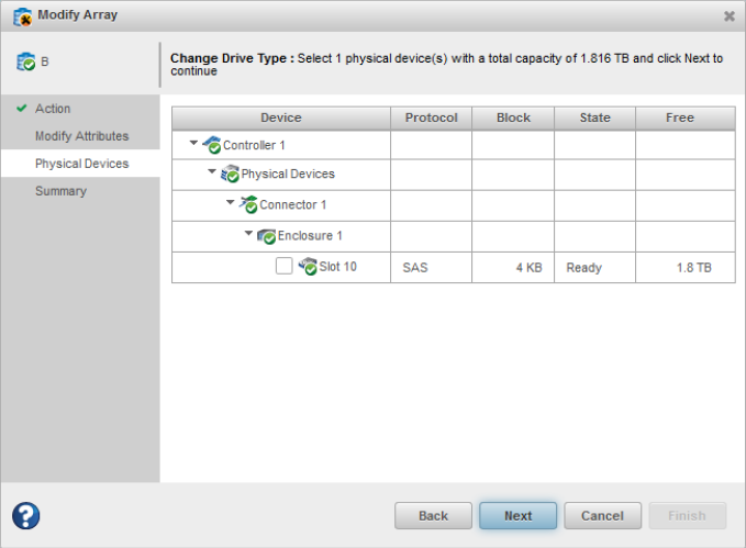 to SAS. For example, if an array is created using 4K SAS drives, you can change the drive