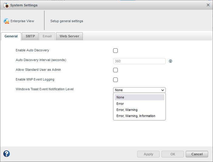- To change the Windows Toast Notification Level, click on the dropdown to select