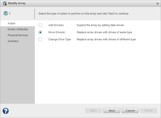 - Select Move Drives to replace array drives with drives of the same type.