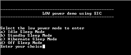 - Select option ‘a’, ‘b’, ‘c’ or ‘d’ to enter the low power mode (The LED is turned off when the device enters low power mode)
