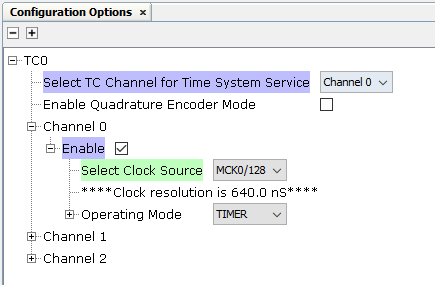 - TC0 Peripheral Library connected to TIME Service and configured as