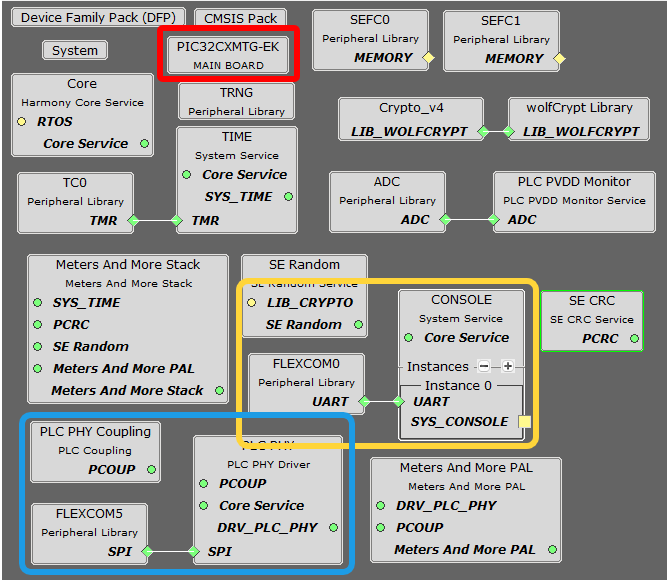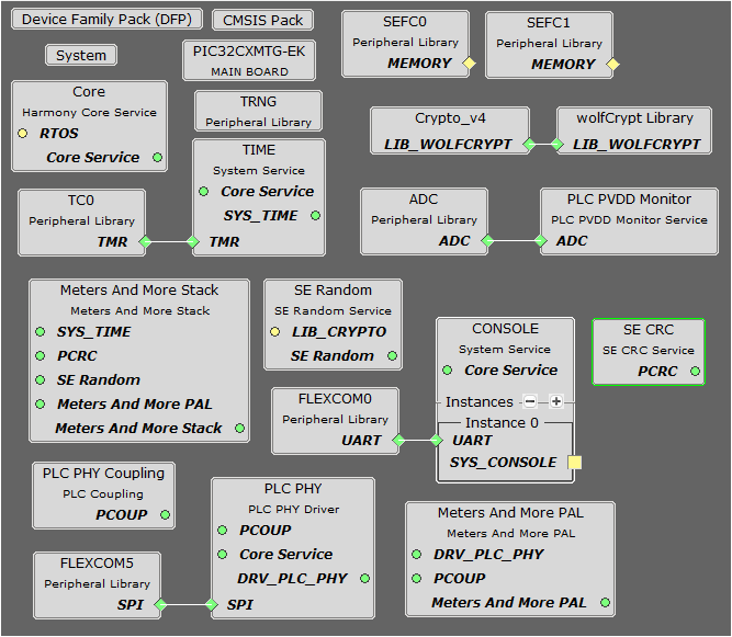 The following figure shows the MCC project graph of Meter App for PIC32CXMTG-EK: