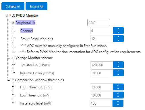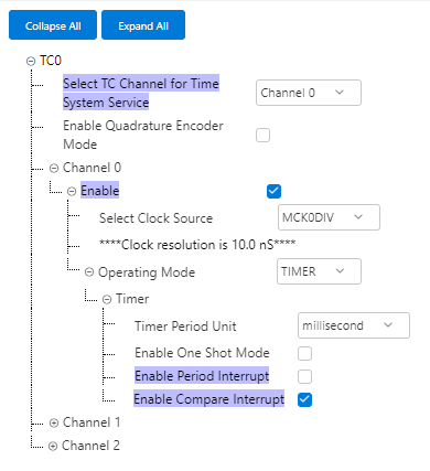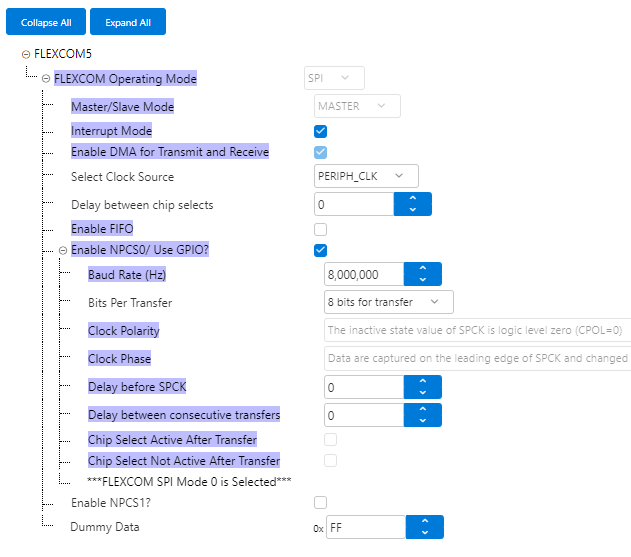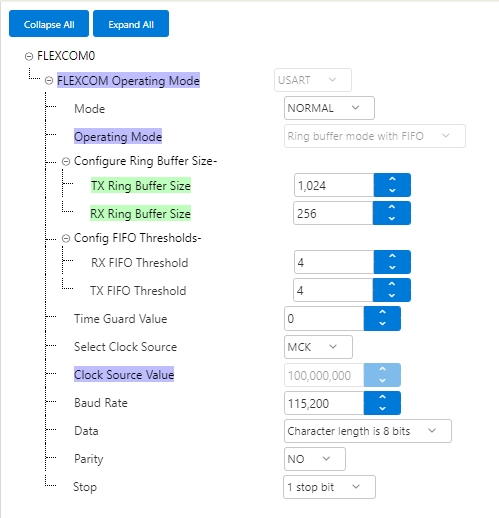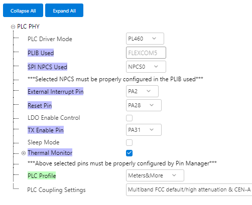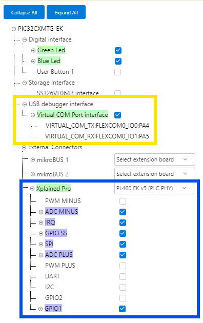 For this application, the following configuration is selected:Figure 1-85. PIC32CXMTG-EK Component
